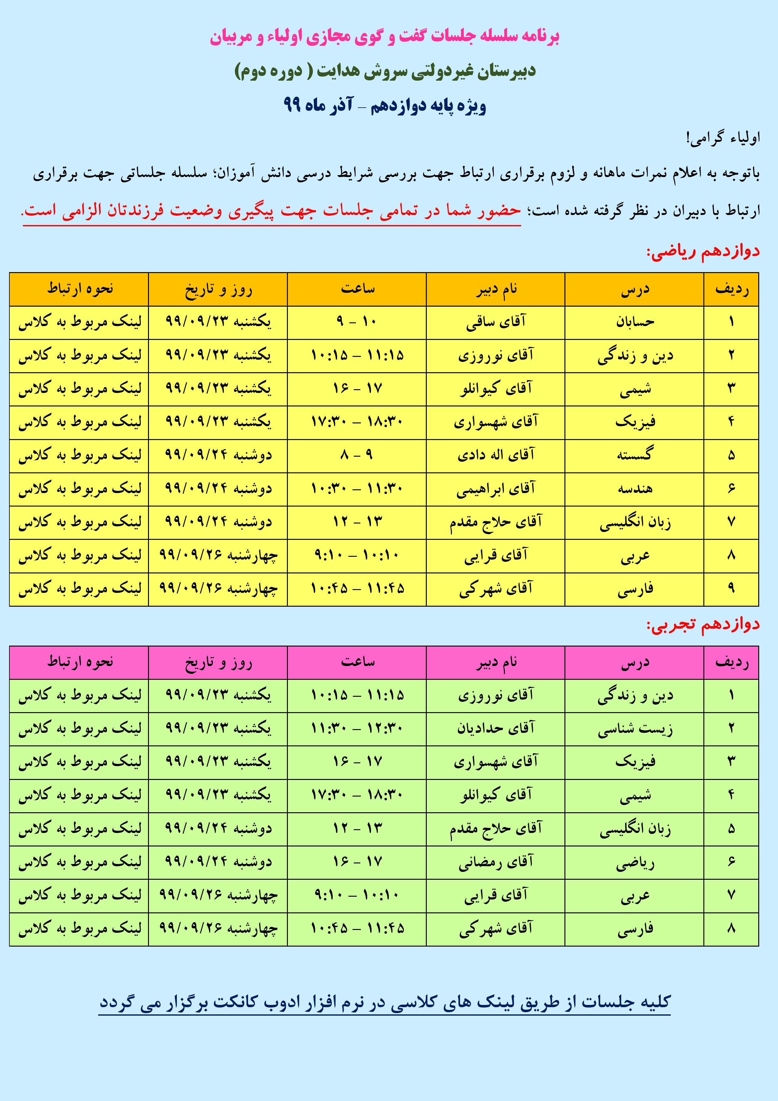 پایه دوازدهم؛ سلسله جلسات مجازی گفت و گوی اولیاء و مربیان