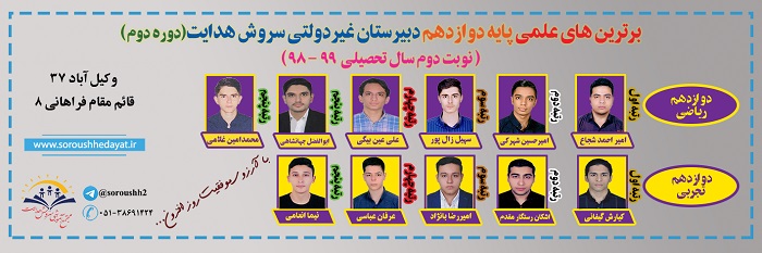 برترین های علمی پایه دوازدهم دبیرستان غیردولتی سروش هدایت(دوره دوم)نوبت دوم سال تحصیلی ۹۹-۹۸